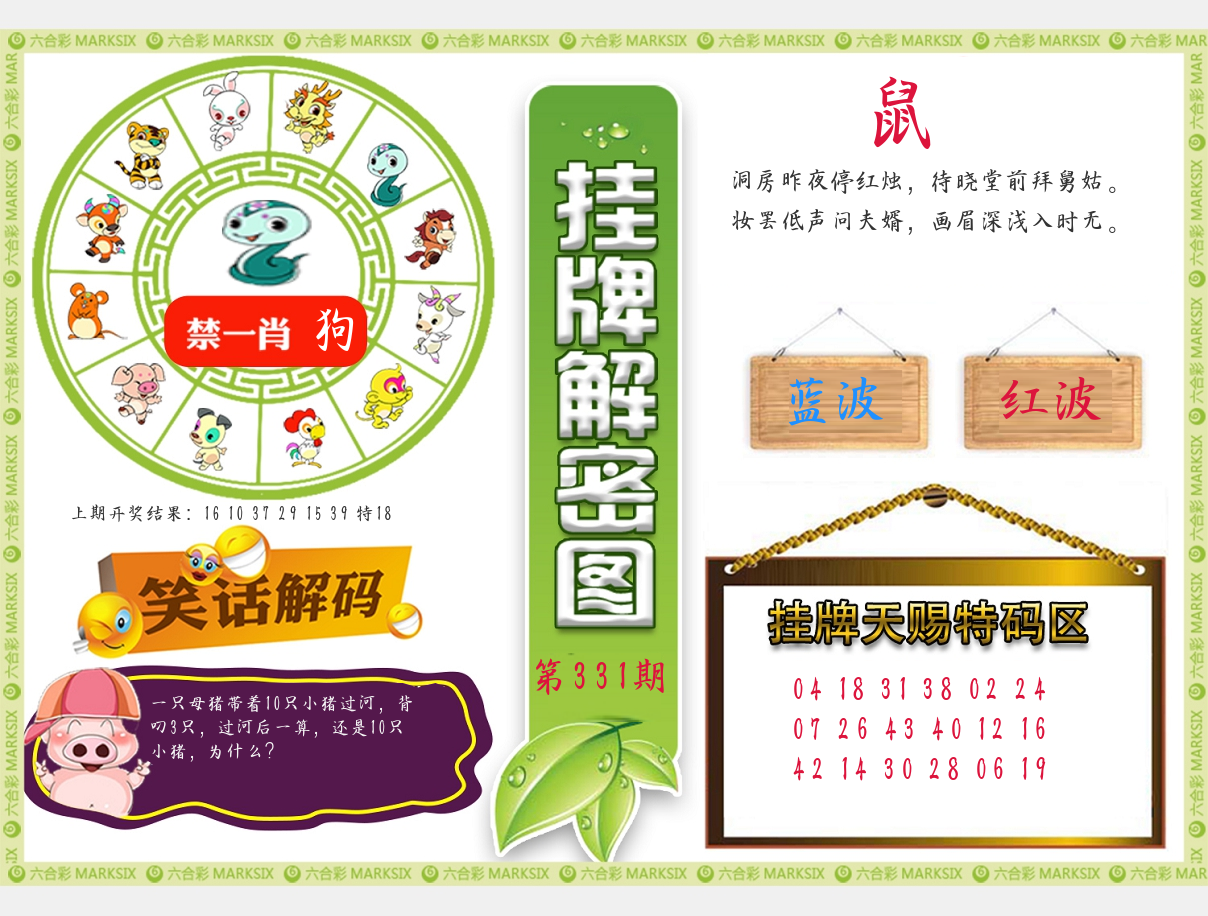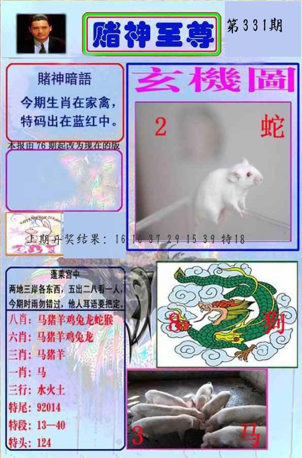 | 0330期推荐七肖: 鼠蛇兔猪猴牛马 -平均压 |