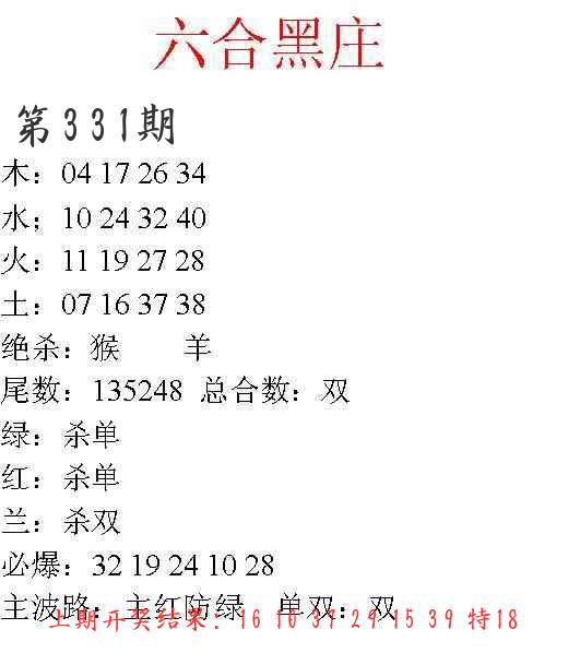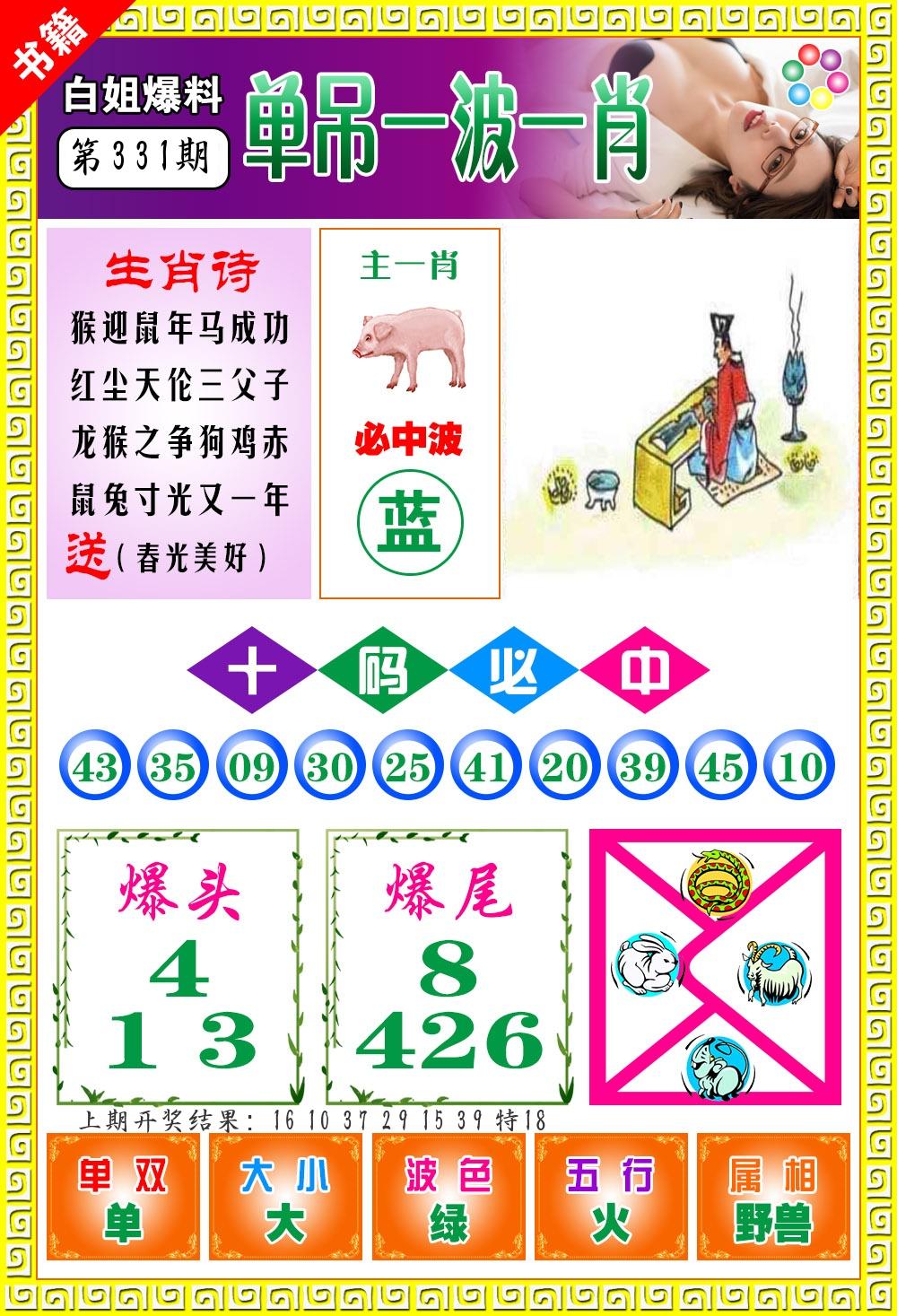 准确率高达90%,期期挑出12-18码 ____________★____________ 【九肖】 0330期【猴鼠蛇狗牛鸡羊猪龙】开????? 0329期【龙猴蛇马猪羊狗牛鸡】开36羊对 0328期【狗蛇兔猪牛羊鸡马鼠】开24羊对 0327期【兔鼠龙猪马狗蛇虎牛】开22鸡错 0326期【猴马虎狗猪蛇羊鸡牛】开24羊对 0325期【猴牛马羊虎鼠龙狗鸡】开17虎对 0324期【鼠羊兔龙马蛇猪鸡猴】开48羊对 0323期【羊牛马虎狗猴鸡鼠猪】开22鸡对 ____________★____________ 【四头】 0330期【1-4-0-2】开?????? 0329期【0-2-3-1】开36羊对 0328期【4-1-2-0】开24羊对 0327期【1-0-4-2】开22鸡对 0326期【3-1-2-0】开24羊对 0325期【4-3-1-0】开17虎对 0324期【1-3-0-2】开48羊错 0323期【1-4-0-3】开22鸡错 ____________★____________ 【四行】 0330期【木-土-金-水】开?????? 0329期【水-火-金-土】开36羊对 0328期【土-火-水-木】开24羊对 0327期【水-土-金-火】开22鸡对 0326期【金-木-土-火】开24羊对 0325期【木-金-水-土】开17虎对 0324期【金-土-木-火】开48羊对 0323期【火-土-水-金】开22鸡对 ____________★____________ 【七尾】 0330期【4-3-1-2-5-8-6】开????? 0329期【3-4-9-0-5-8-6】开36羊对 0328期【1-2-5-7-8-4-0】开24羊对 0327期【1-5-2-4-0-7-6】开22鸡对 0326期【4-2-8-6-5-1-7】开24羊对 0325期【5-9-0-6-4-7-8】开17虎对 0324期【7-5-1-0-9-4-6】开48羊错 0323期【5-2-4-0-8-6-7】开22鸡对 ____________★____________ 【双波】 0330期【红波+绿波】开????? 0329期【红波+绿波】开36羊错 0328期【红波+绿波】开24羊对 0327期【蓝波+红波】开22鸡错 0326期【绿波+蓝波】开24羊错 0325期【绿波+红波】开17虎对 0324期【绿波+红波】开48羊错 0323期【蓝波+红波】开22鸡错 ____________★____________ |