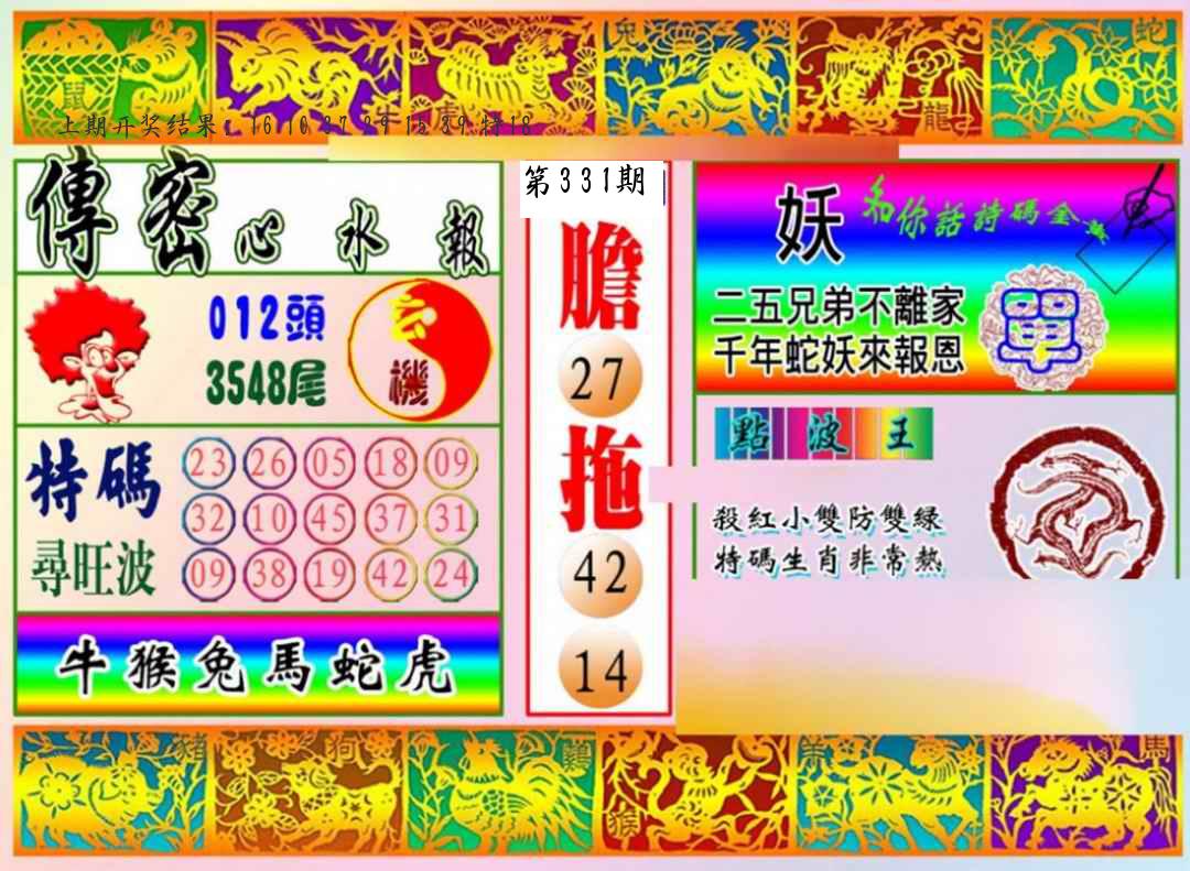 0323期 家 【猪狗鸡】 野 【鼠龙虎】开 22鸡对 |